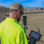 In the photos, our crew is providing layout for the footings of the MSE (mechanically stabilized earth) retaining walls near the south end of the bridge over Sharon Road.